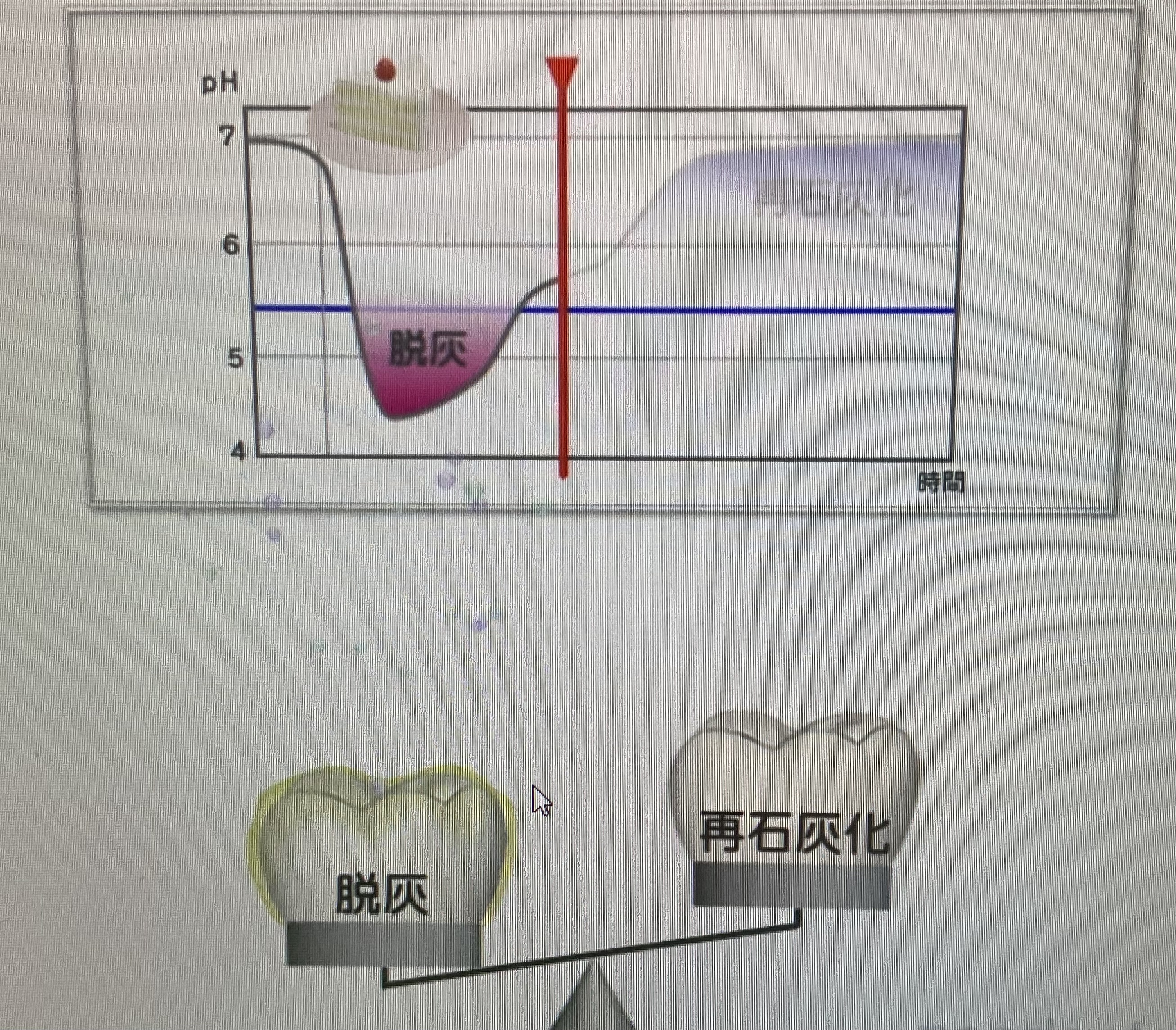 食事をする時間、しない時間のメリハリをつけて歯を溶かす脱灰と再石灰化のバランスを取ることが重要であることがわかると思います!