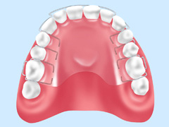 取り外し可能な矯正装置で、顎の骨を拡げて歯並びを整えます。 【メリット】 【デメリット】 |